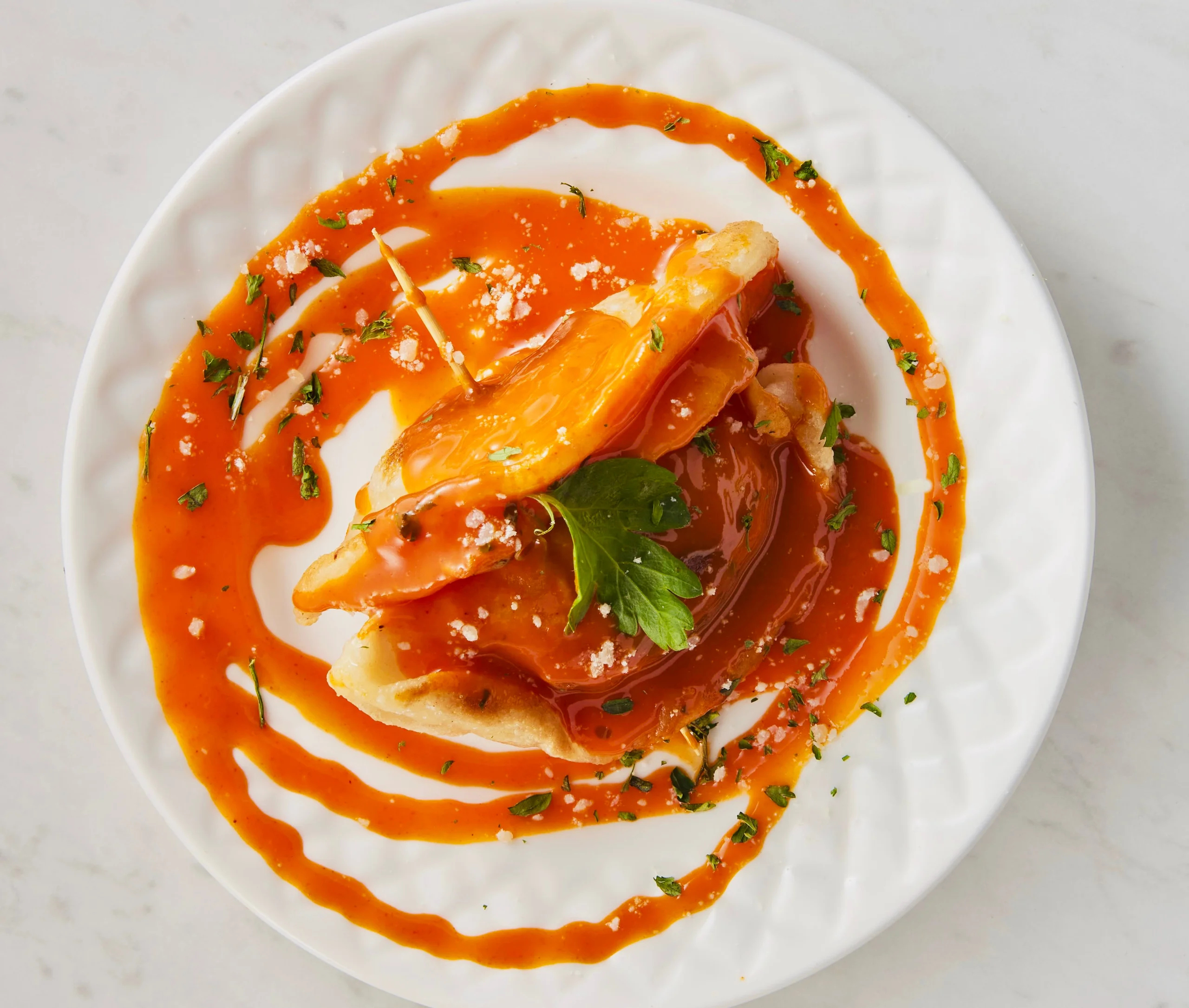 Turn up the heat with our Buffalo Chicken Pierogi—stuffed with juicy shredded chicken tossed in zesty buffalo sauce, then folded into soft, golden dough. It’s the perfect balance of spicy, tangy, and comforting. Dip in ranch or blue cheese for that game-day vibe, or serve as a fiery twist on a classic favorite.