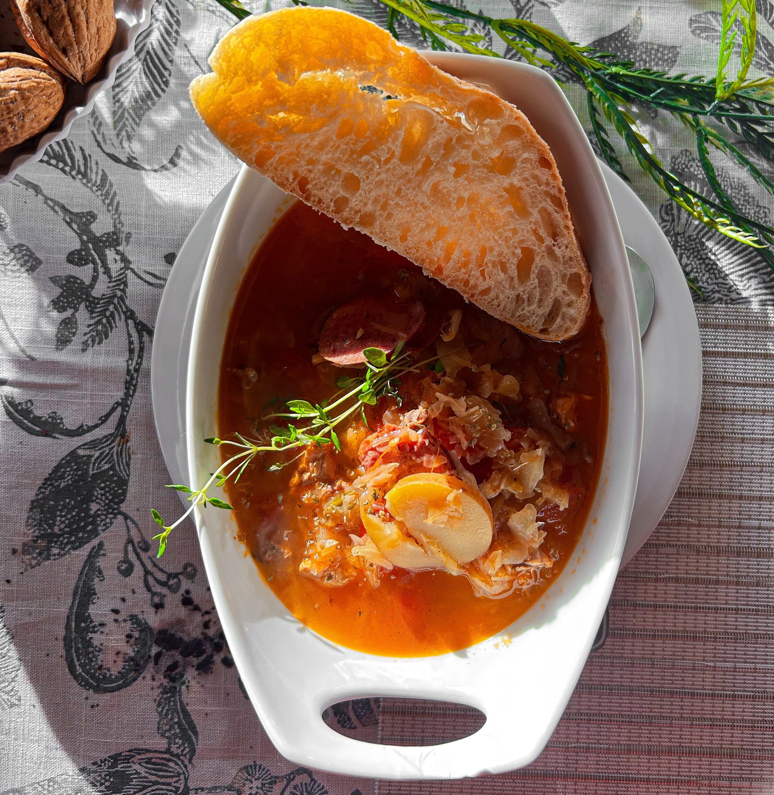 Our take on this centuries-old Polish classic is slow-simmered to perfection with sauerkraut, fresh cabbage, and a medley of tender chicken, pork, beef, and smoky kielbasa. Rich with deep flavor from herbs, spices, and a hint of tomato, this hearty hunter’s stew is both rustic and refined—just like it’s been served for generations. A warm, savory bowl of comfort, perfect for cold nights, holiday gatherings, or anytime your soul needs feeding.
