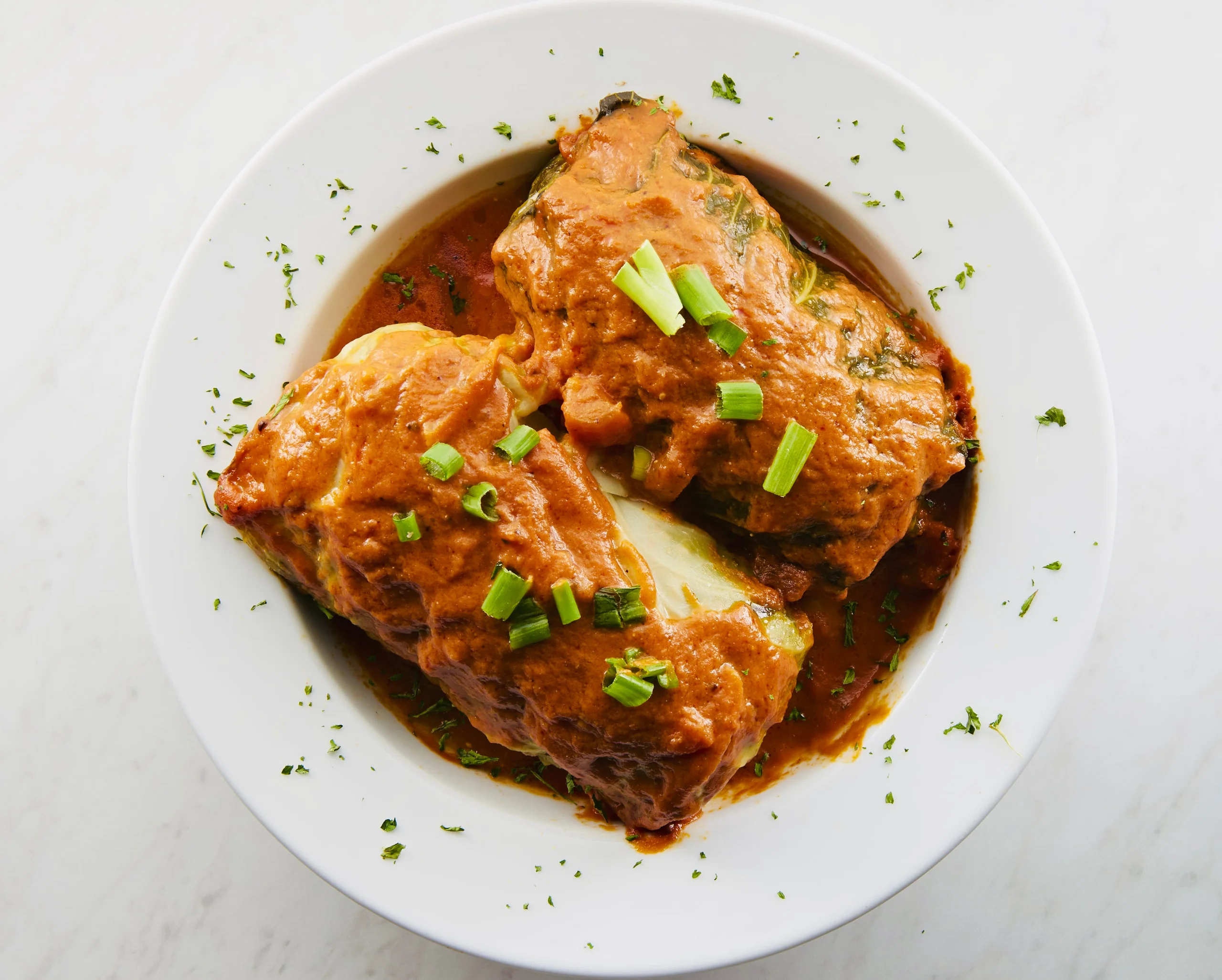 Our hand-rolled Gołąbki (pronounced gaw-WUMP-kee) are tender cabbage leaves wrapped around a savory blend of seasoned ground beef, rice, and herbs, then slow-baked in a rich, tangy tomato sauce. Each order includes 12 generously sized rolls, perfect for sharing—or not! A timeless Polish comfort dish that fills the belly and the heart, just like Babcia used to make.